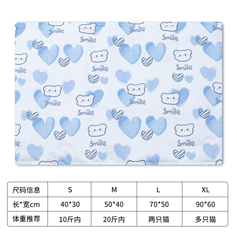 神经猫(shenjingmao)猫咪冰垫猫垫子宠物专用冰窝猫窝狗狗夏天凉席夏季睡垫地垫睡觉用 微笑小熊冰垫 XL型-适合多只猫(60cm*90cm)