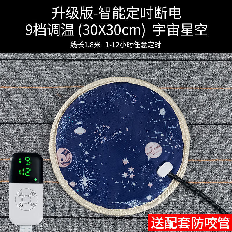 皆百福 宠物电热毯防水耐咬宠物电热垫暖垫防抓防漏狗猫咪猫用恒温猫咪电热毯 宇宙星空【9档定时】 30*30cm(圆形)