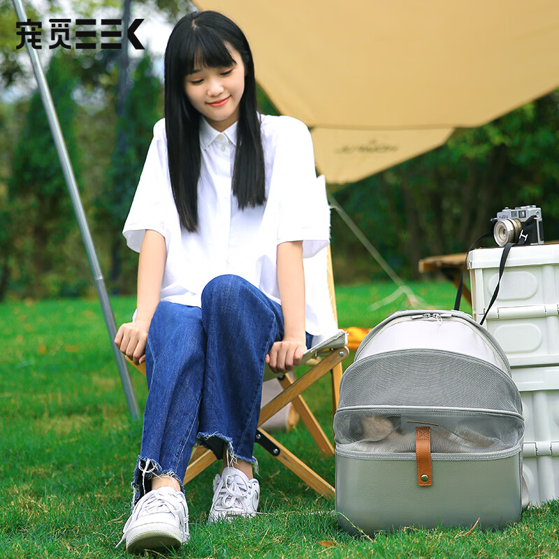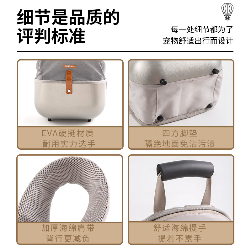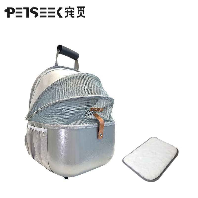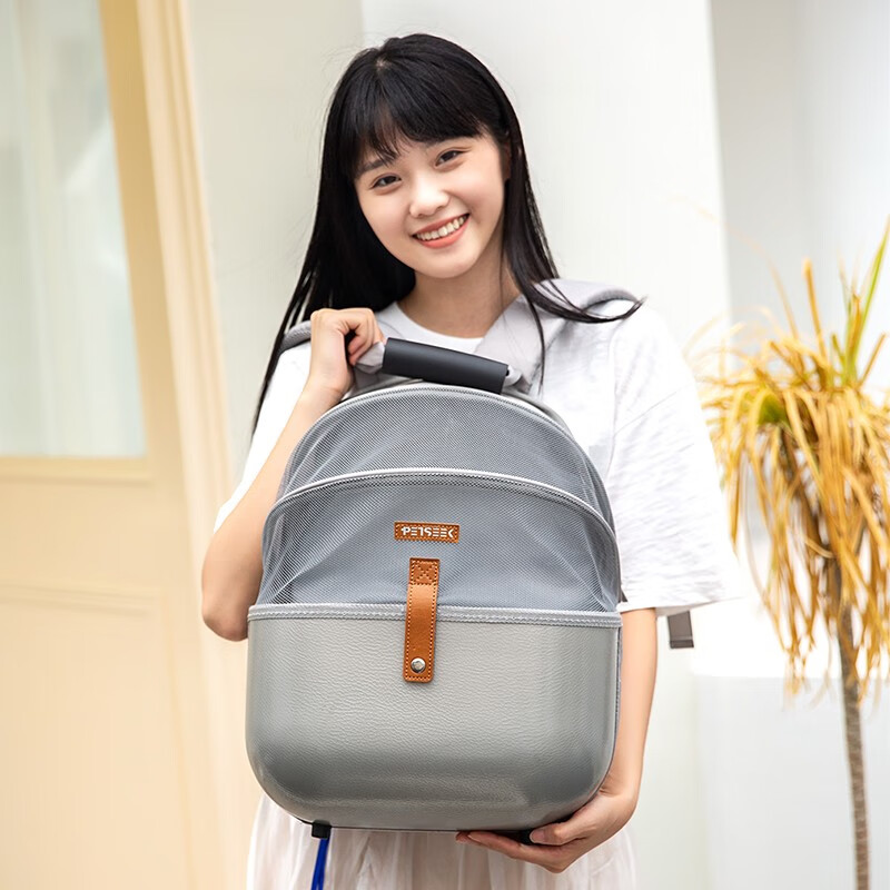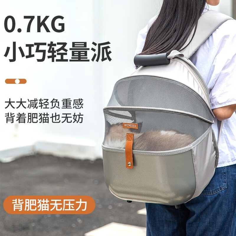 宠觅(petseek)宠觅猫包外出便携大容量猫咪双肩背包宠物太空舱透气狗包宠物用品 灰色大号荔枝纹折叠 猫15/狗10斤