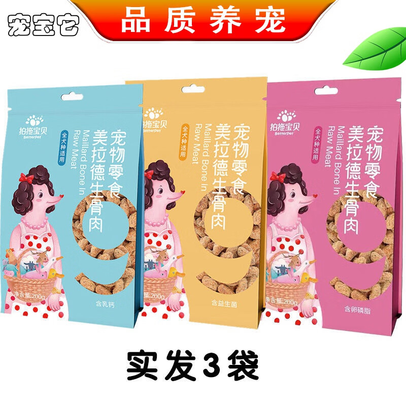 拍拖美拉德生骨肉狗狗零食补钙营养牛肉粒训犬奖励200g冻干肉宠宝它 【实惠装】三种口味各一包