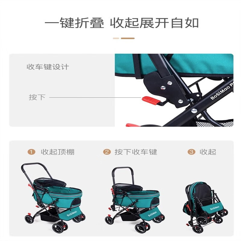 BOSIMAO波斯猫小型宠物推车轻便可折叠猫咪外出遛狗代步车大空间 黑色【座舱长62宽33高50CM】 【