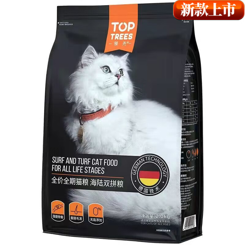 领先猫粮海陆双拼2kg高蛋白成幼猫通用猫粮营养增肥发腮调理肠胃 1包 默认1