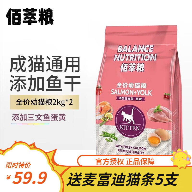 麦富迪猫粮佰萃成猫粮幼增肥发腮通用型猫粮猫布偶美短蓝猫猫粮加小鱼干 三文鱼 蛋黄佰萃幼猫粮 2kg*2