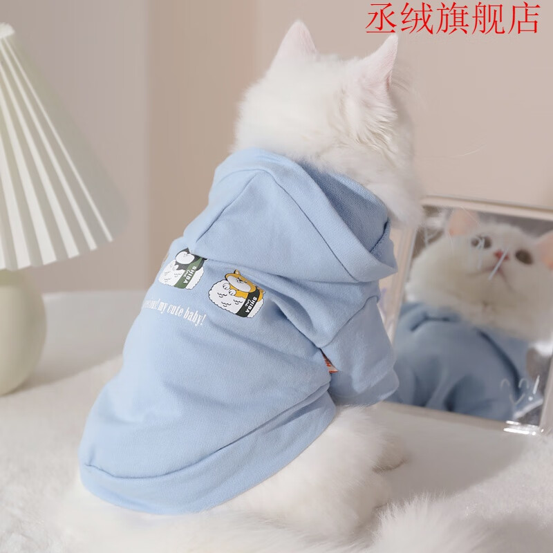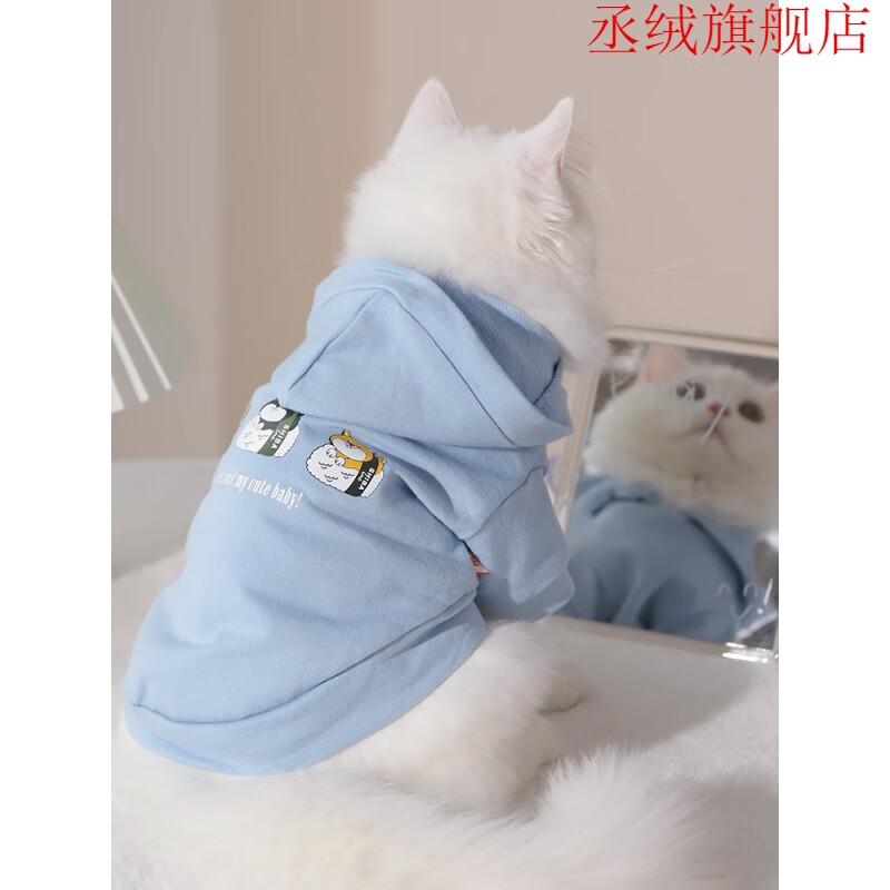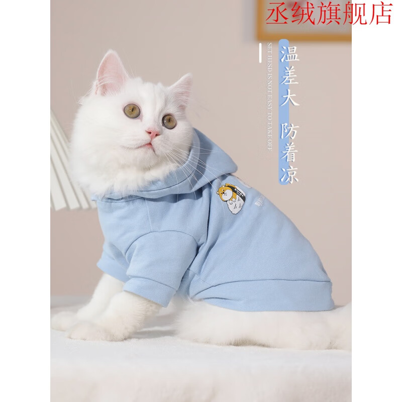 【闪电发货】猫衣服防掉毛四只脚 猫咪衣服薄款幼猫公猫小猫冬季 天蓝休闲卫衣 XS-体重(2-4斤)