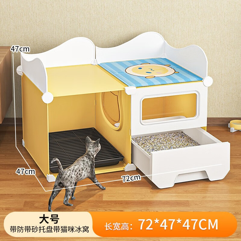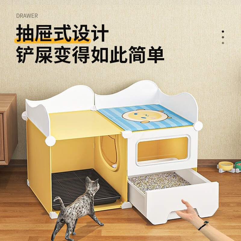 爱咪宠猫砂盆走廊式超大号防外溅抽屉式全半封闭式小号幼猫厕所隔臭屎盆 【原木色】大号 防带砂托盘 冰垫