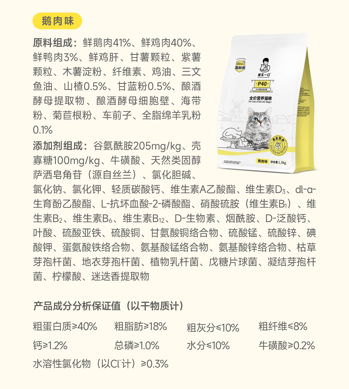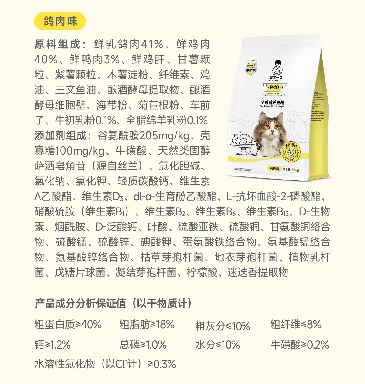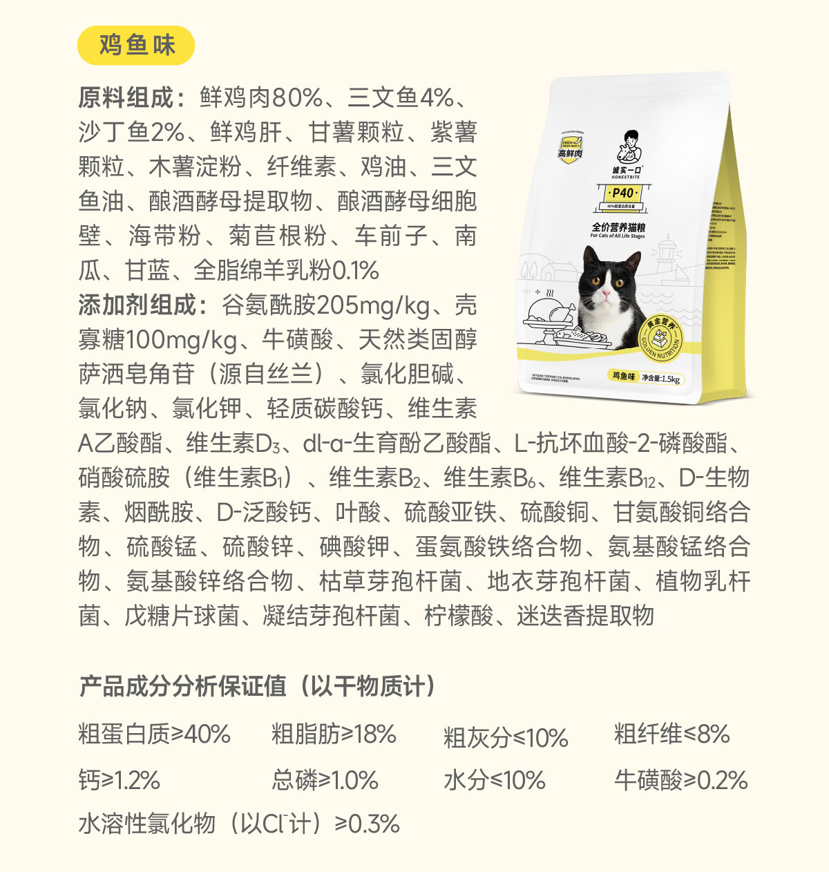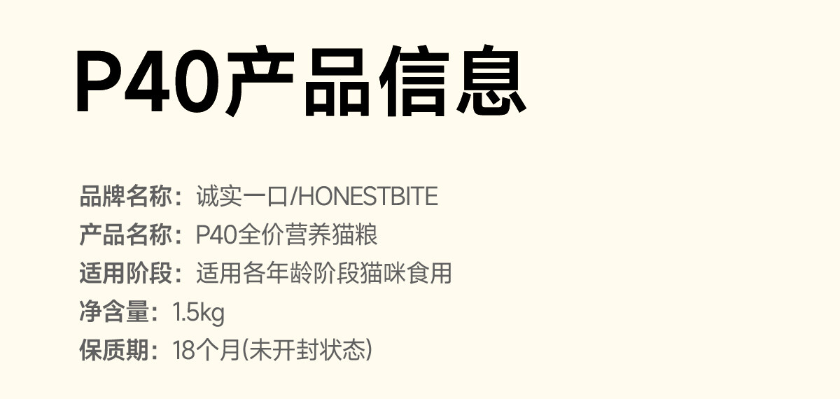 【临期特惠】诚实一口 P40全阶段全价猫粮40g/1.5kg