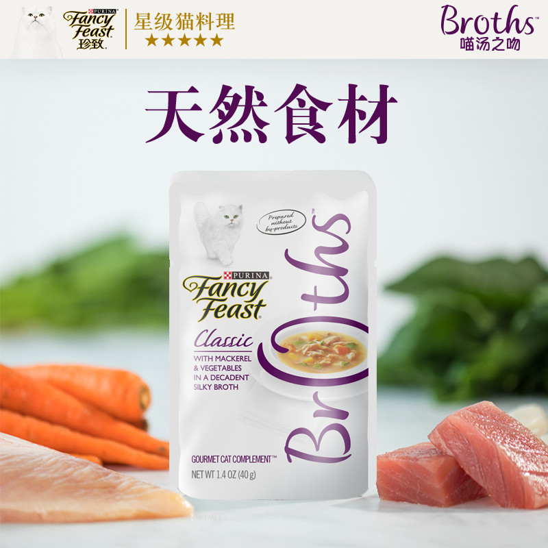 珍致(FancyFeast)喵汤之吻 泰国进口宠物零食软包猫罐头 猫零食 精选鲜浓汤包 【浓汤】鲭鱼 生蔬