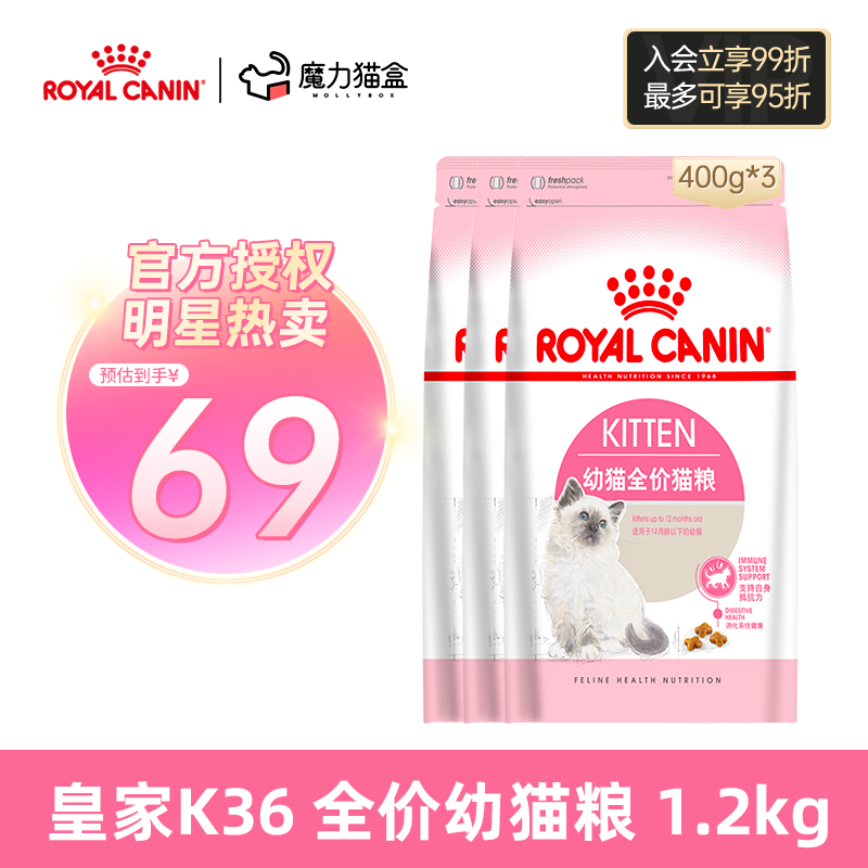 皇家猫粮 K36幼猫粮 适合4-12月龄及怀孕哺乳母猫粮 全价幼猫粮 1.2kg(400g*3)
