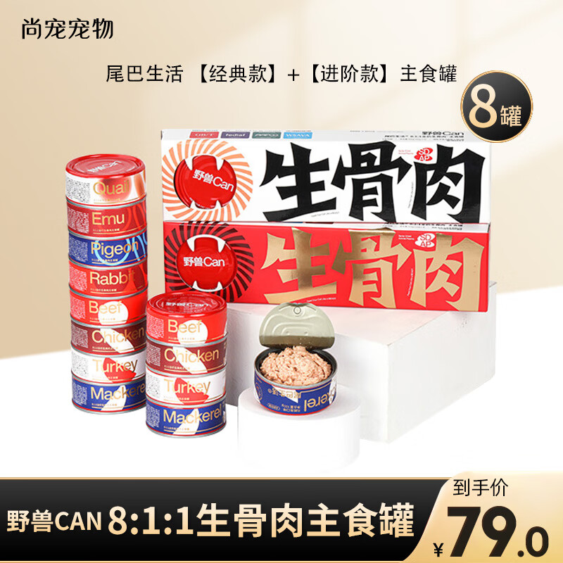 尾巴生活猫罐头 野兽CAN 811生骨肉主食猫罐头170g 猫咪幼猫成猫罐头湿粮 【经典款 进阶款】100g*8罐