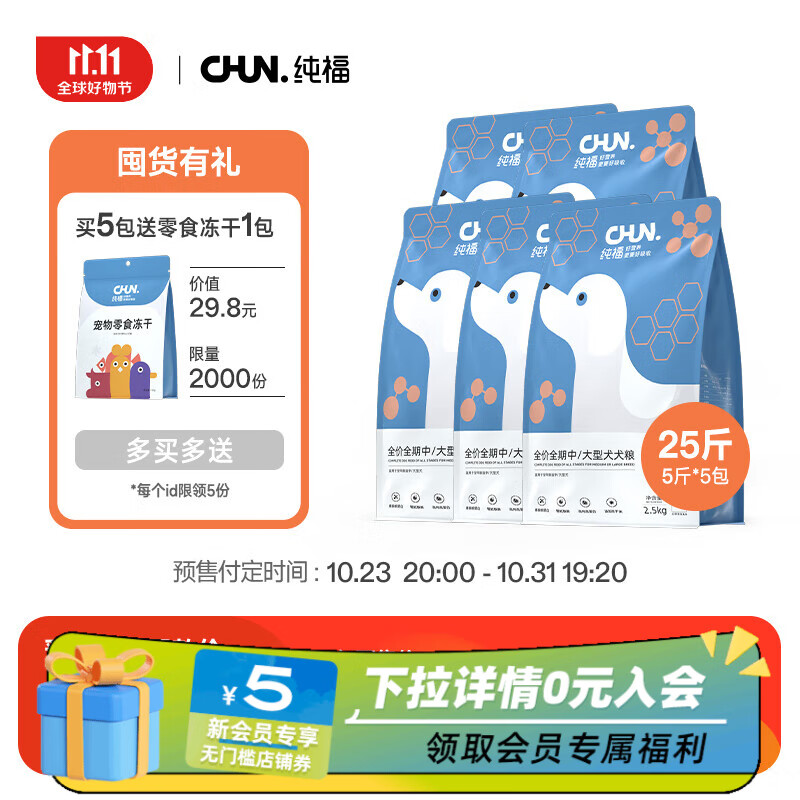 纯福(chunfu)通用型金毛拉布拉多边牧中型犬大型犬幼犬成犬专用冻干狗粮 【预售】商品链接详见店铺首页
