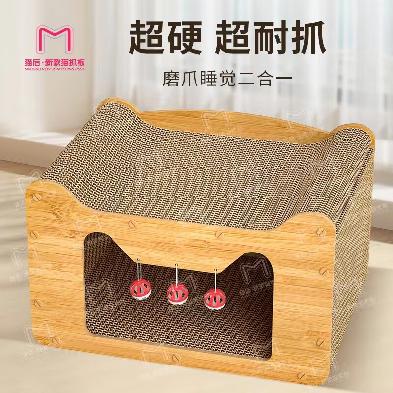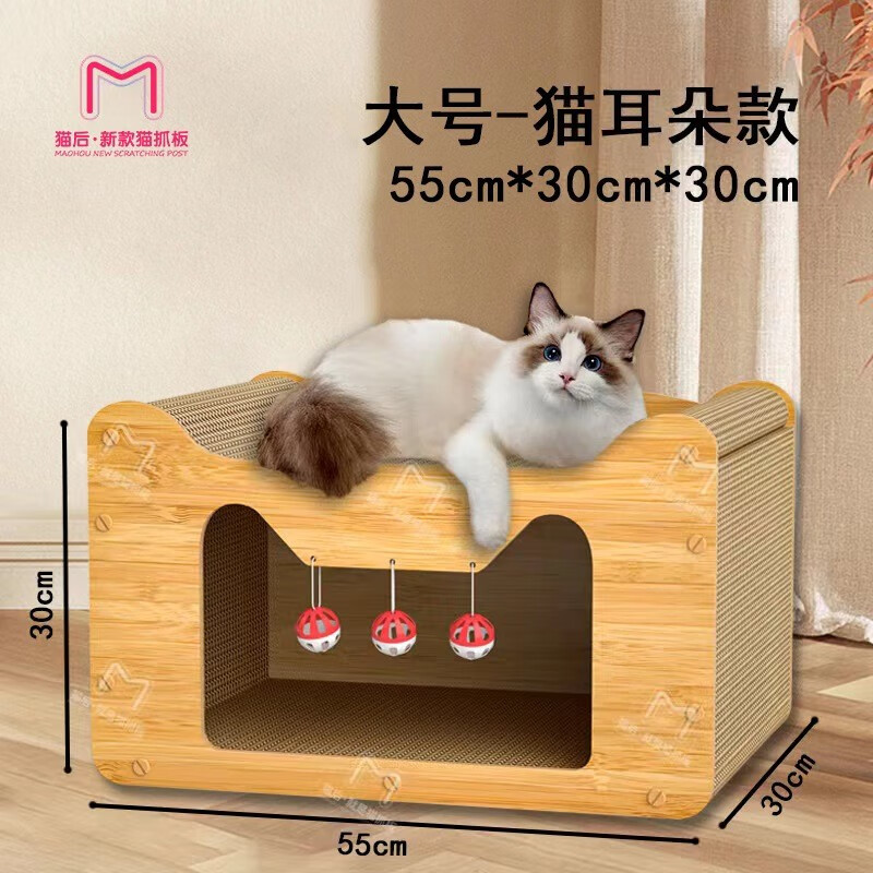 猫后宠物玩具猫抓板窝不掉屑猫抓盆瓦楞纸猫咪玩具防猫抓磨爪板大型猫窝圆形碗形猫抓板椭圆l形猫抓板立式 大号沙发猫屋55长30宽30高cm