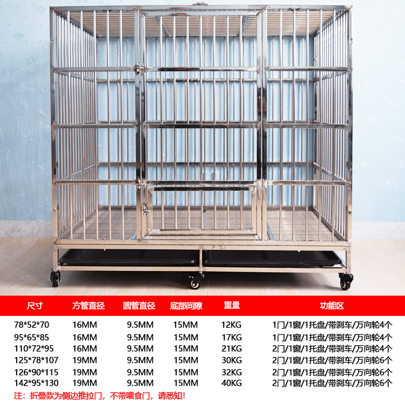 金百特【升级满焊加粗加厚】圆管笼不锈钢狗笼子大型犬宠物狗别墅金毛 加粗加厚不锈钢 【带狗碗 碗架】110*72*95cm