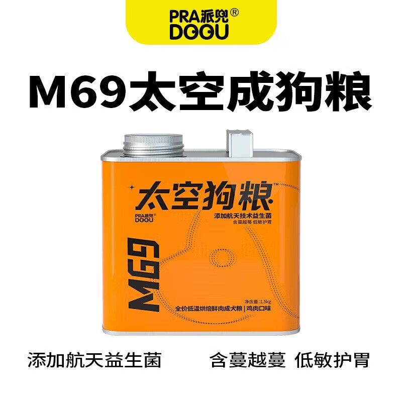 派兜(PRADOOU)M69太空狗粮全价通用低温烘焙鲜肉粮 成犬粮1.5kg(罐)