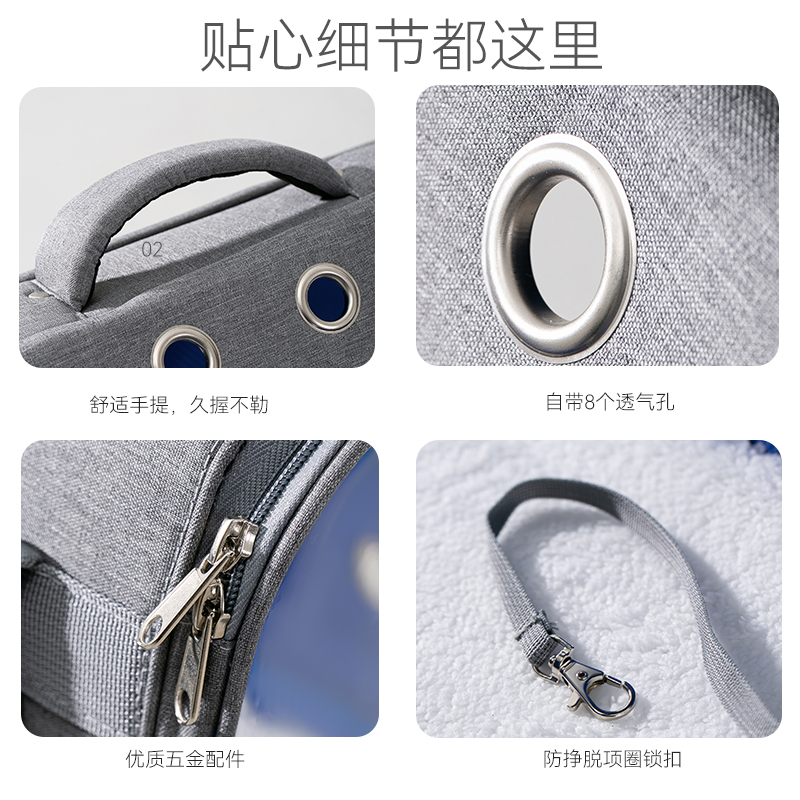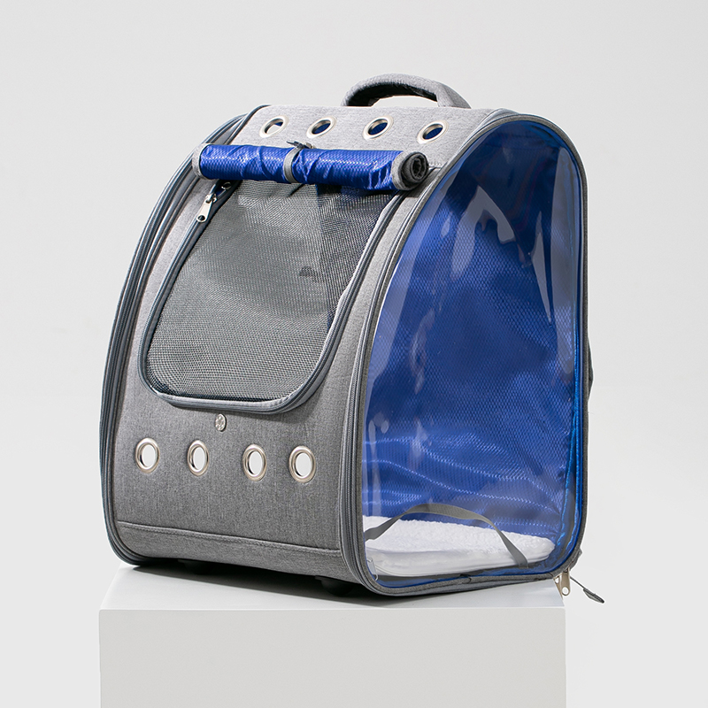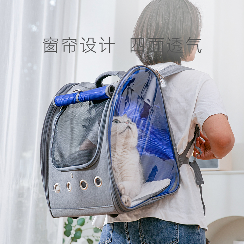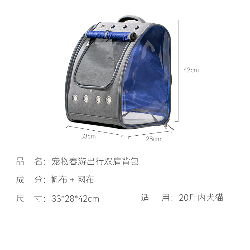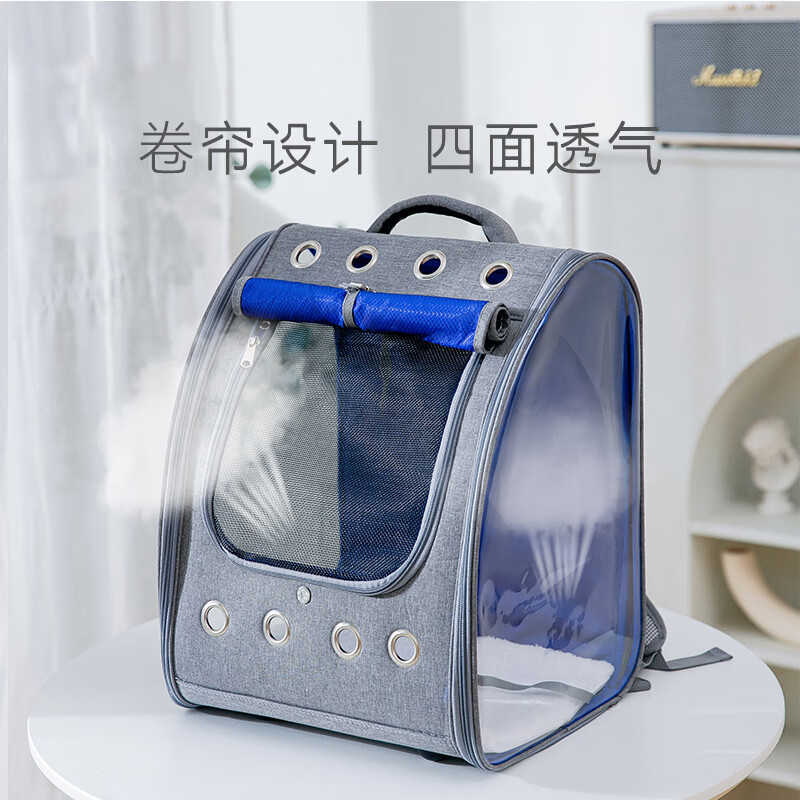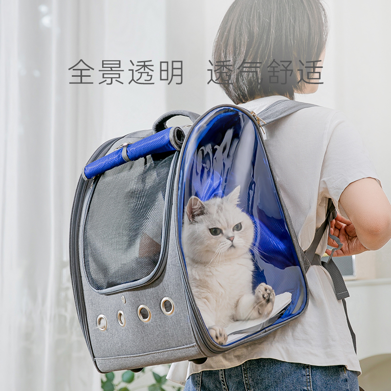 嬉皮狗猫包外出便携猫咪外出包太空舱透明猫背包大容量溜猫袋宠物双肩包 内蓝 外灰 33*28*42cm(建议20斤内犬猫)