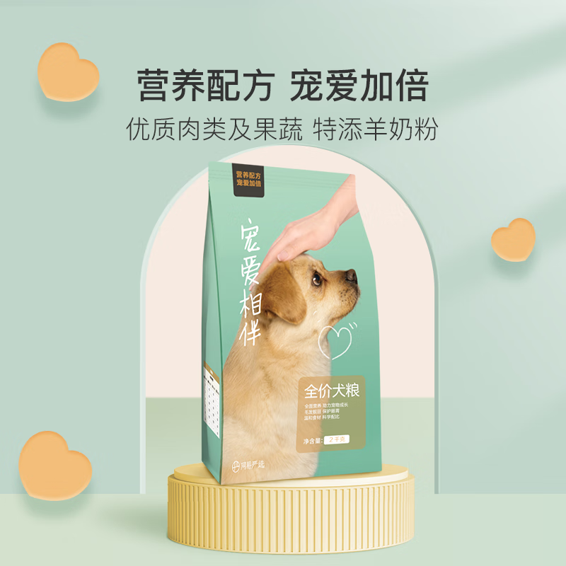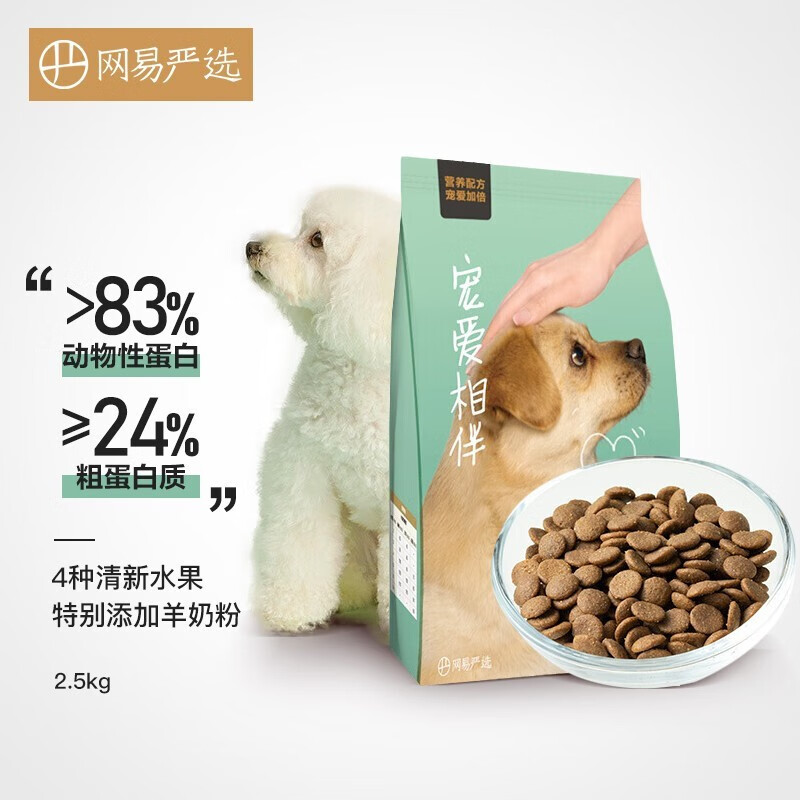 网易严选全价三拼犬粮 狗粮无谷物肉粒三文鱼牛肉鸡肉鸭肉柯基柴犬泰迪 宠爱相伴犬粮通用型2.5kg*1袋
