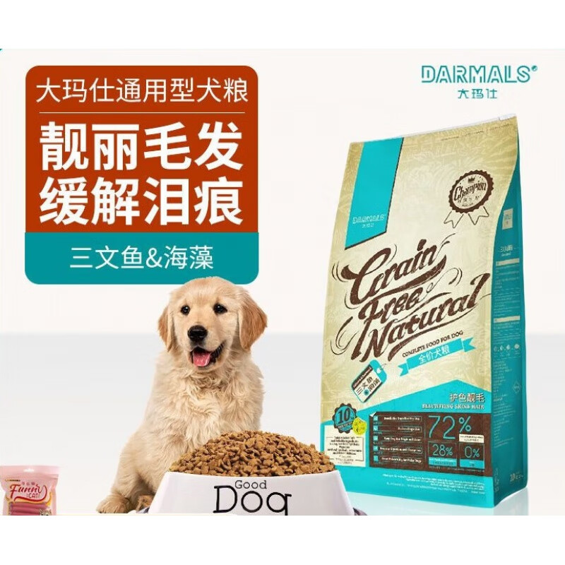 野拐大玛仕狗粮鸭肉梨去缓泪痕泰迪比熊金毛博美专用成幼犬通用型狗粮 三文鱼海藻配方 1.5kg