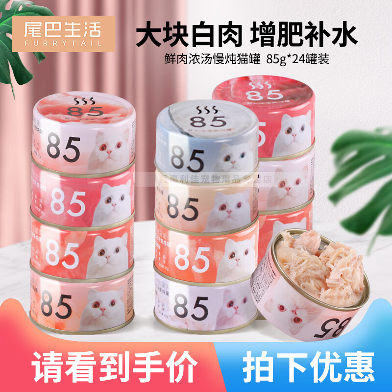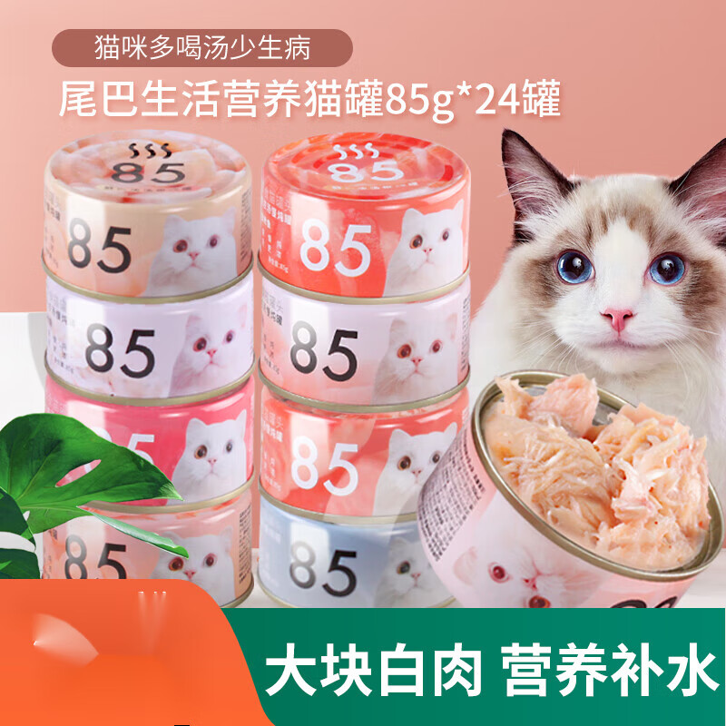 尾巴生活85成猫幼猫白肉猫零食罐营养猫罐头24罐鸡肉金枪虾肉 鲜虾 金枪85g*24罐 24罐