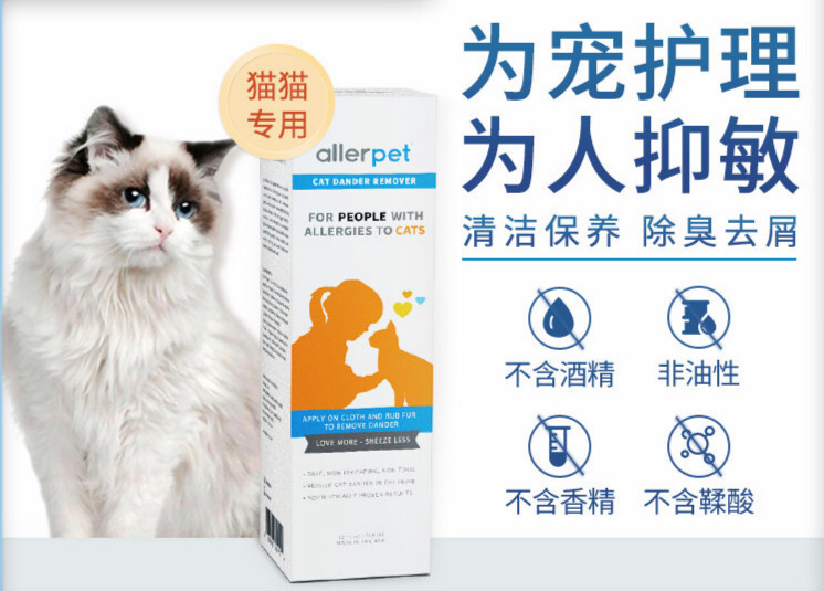 allerpet艾露沛防猫毛抗过敏皮屑猫用皮屑去皮屑干洗免洗香波 猫咪用