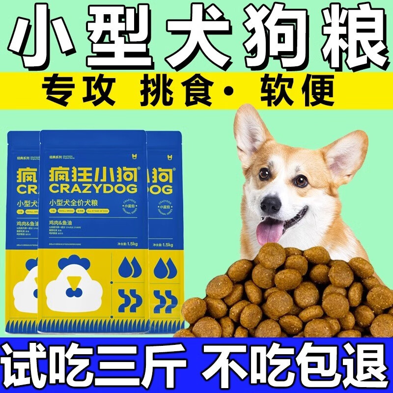 疯狂小狗全价狗粮幼犬成犬通用型3斤挑食小型犬专用冻干非粮 一袋装