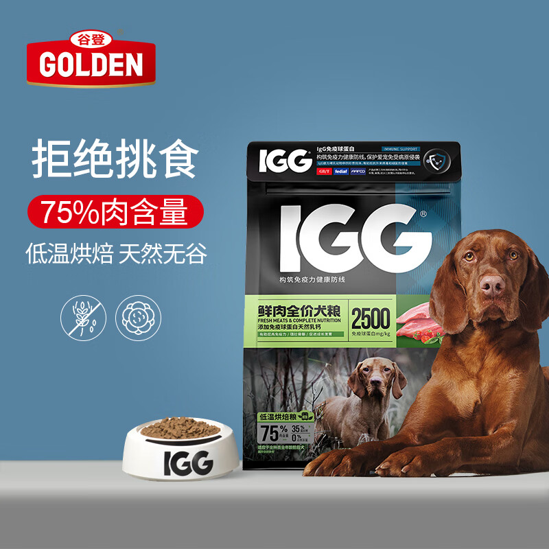 谷登(GOLDEN)狗粮IGG鲜肉全价功能狗粮幼犬主粮成犬主粮无谷低敏低温烘焙粮调理肠胃1.5kg