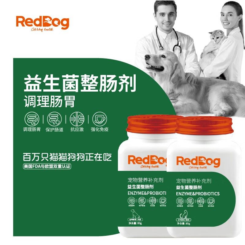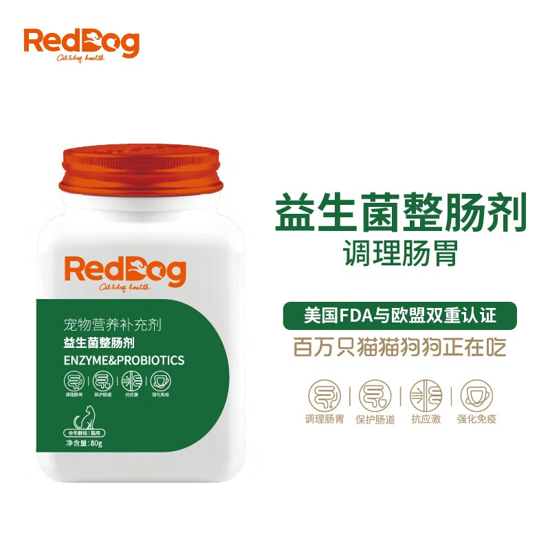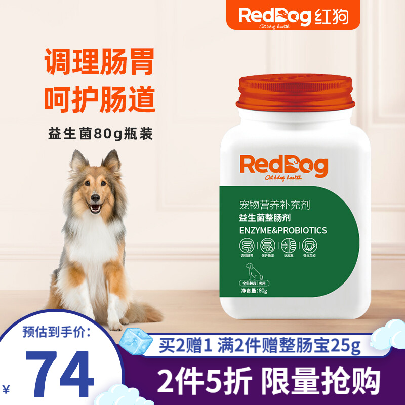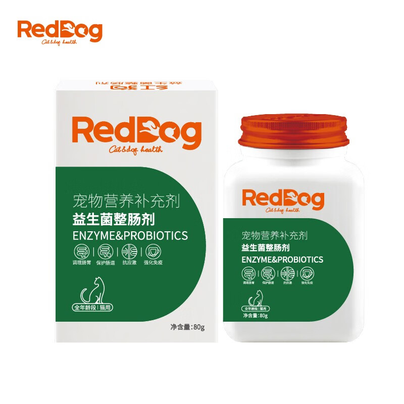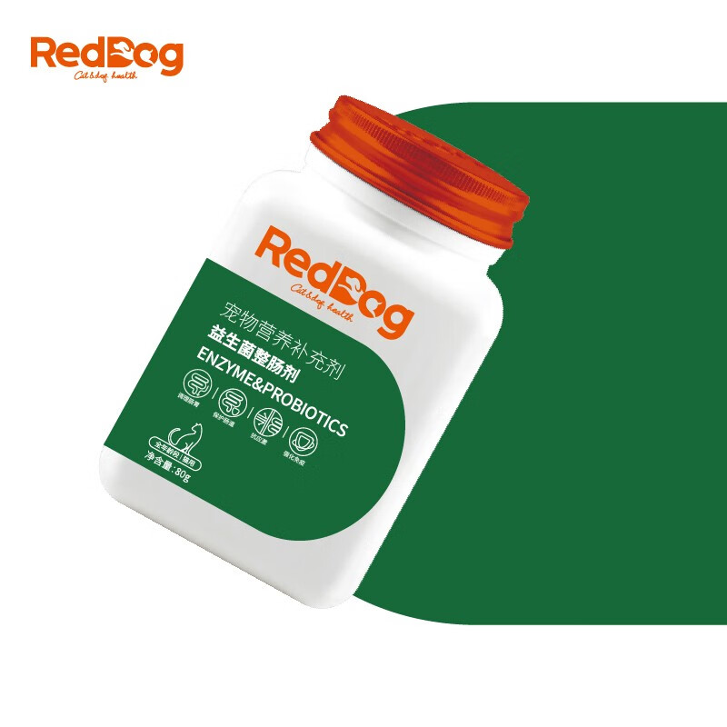 红狗RedDog 复合益生菌猫咪狗狗 宠物整肠剂肠胃宝 抗应激腹泻肠道调理消化酶 犬用益生菌80g
