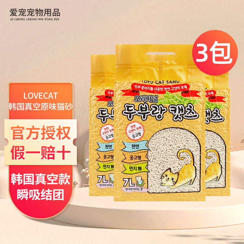 爱宠爱猫猫砂 love cat猫砂豆腐猫砂原味绿茶植物猫砂除臭易结团可冲马桶 原味豆腐猫砂 5.6斤*3包