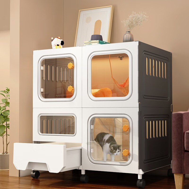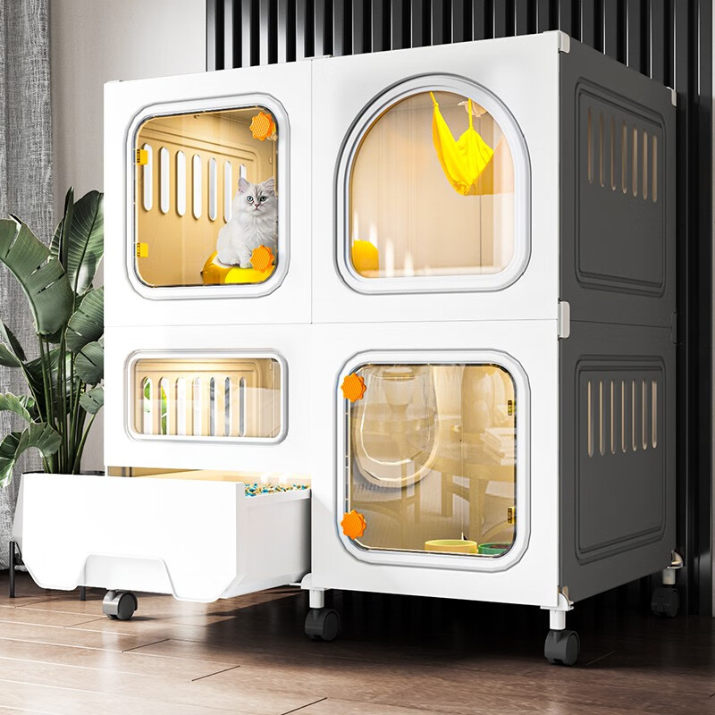 爱咪宠猫笼子超大号猫窝别墅带厕所一体家用猫柜适合大猫宠物室内猫舍屋 带滑轮易清理【71*46*76】 猫厕款:封闭猫砂盆带铲 遥控灯