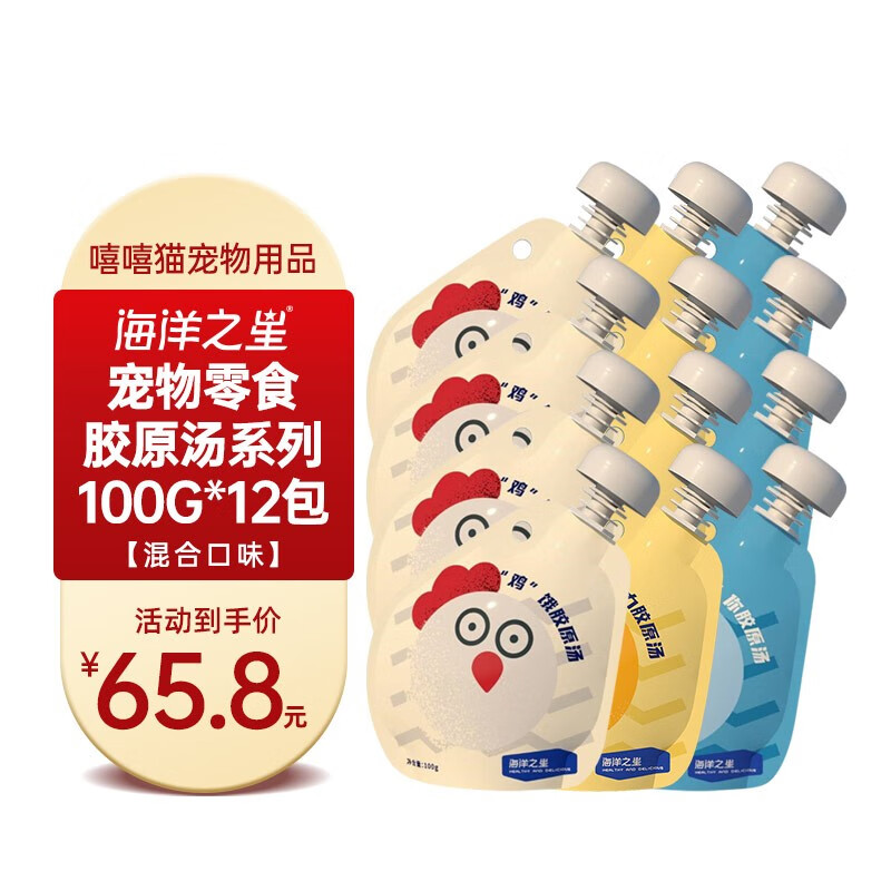 海洋之星胶原汤包宠物猫咪狗狗零食浓汤包湿粮罐头宠物成幼犬猫即食零食包犬猫通用型 混合100g*12