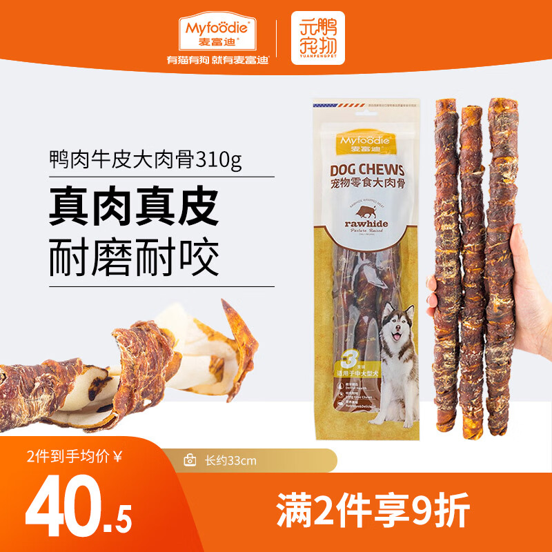 麦富迪狗零食 磨牙洁齿肉干 哈士奇金毛萨摩耶中大型犬专用 鸭肉牛皮大肉骨310g