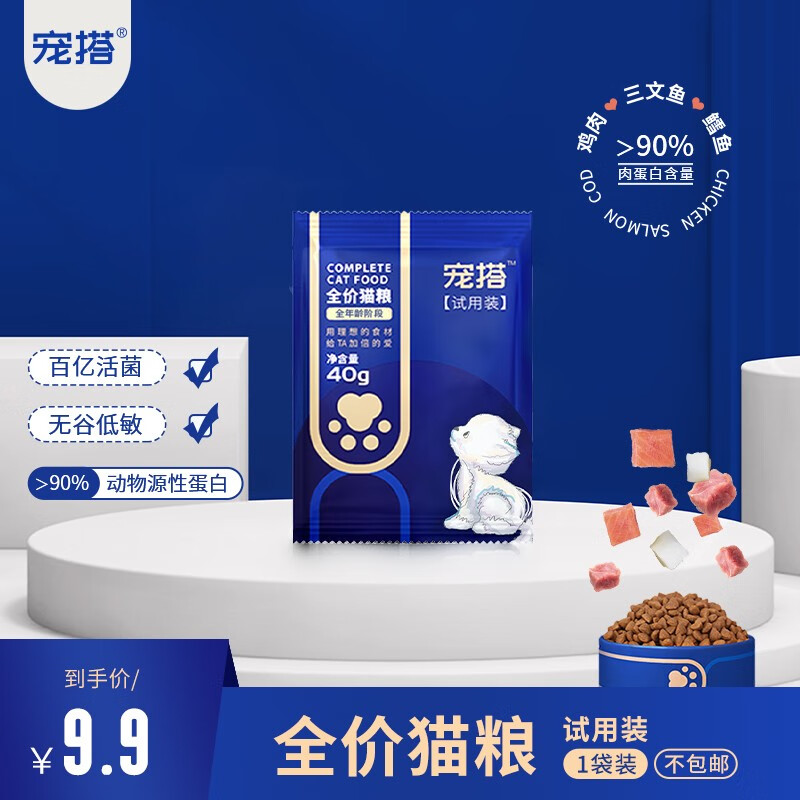 宠搭猫粮无谷全价 幼猫成猫益生菌猫粮 试吃装(40g)