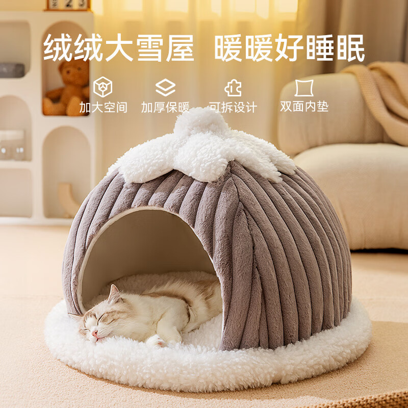 嬉皮狗(hipidog)猫窝保暖保暖狗窝封闭式冬季保暖猫屋四季通用冬天网红幼猫猫咪窝 灰色 S(建议体重6斤内)