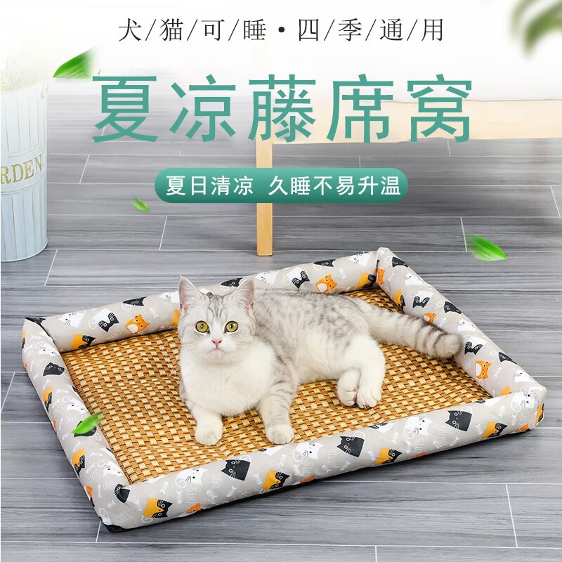 瑜品佳 猫窝大号夏季凉席垫子 小型犬狗床四季通用耐磨防水不易粘毛宠物 浅灰字母猫(建议15斤内的宠物)