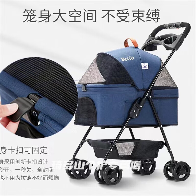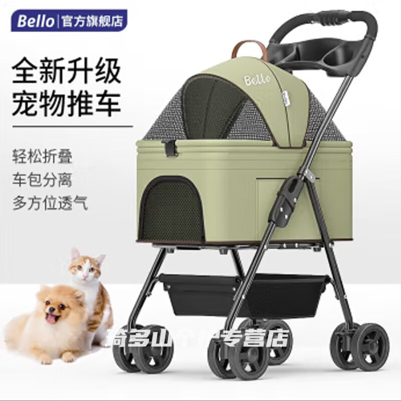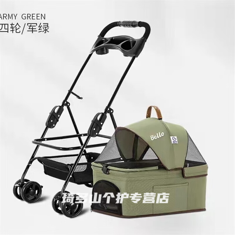 酷奇宠BELLO升级轻便可折叠车包分离宠物手推车狗狗仔猫咪推车儿外出 小号军绿【承重24斤】可分离送