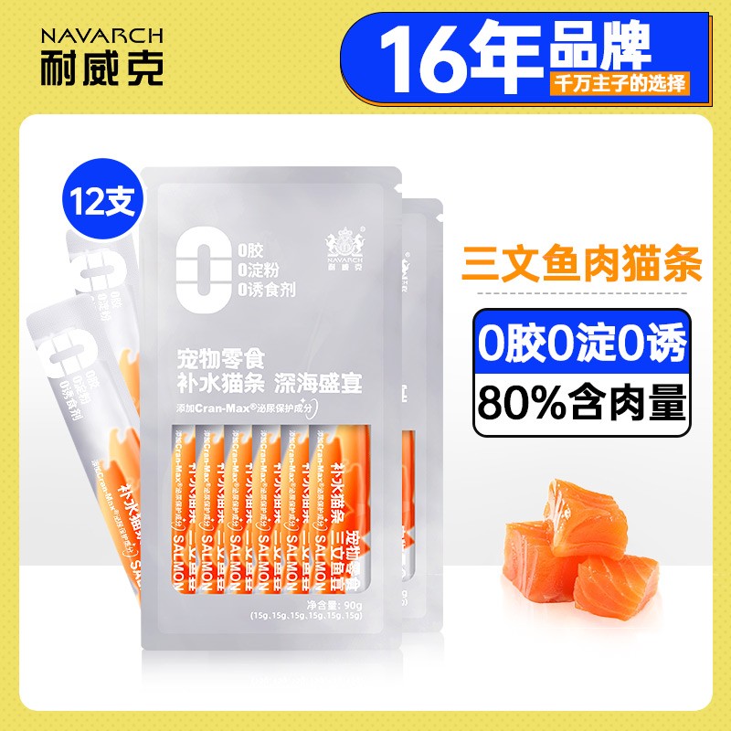 耐威克 猫零食 叁零猫条湿粮拌干粮补水增肥发腮补充营养 深海盛宴【三文鱼】2袋*12支