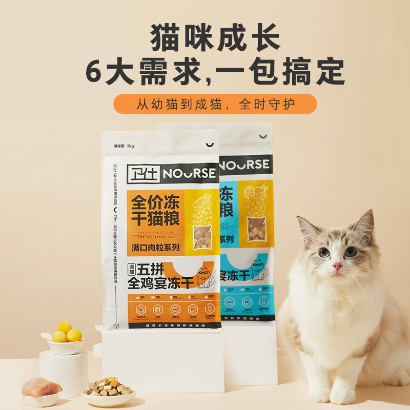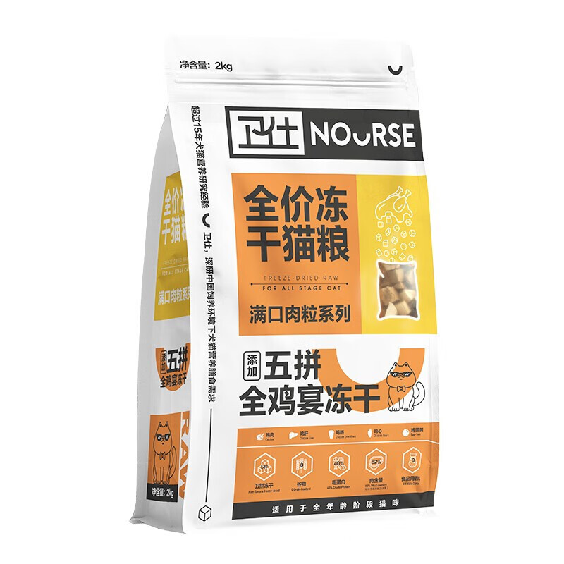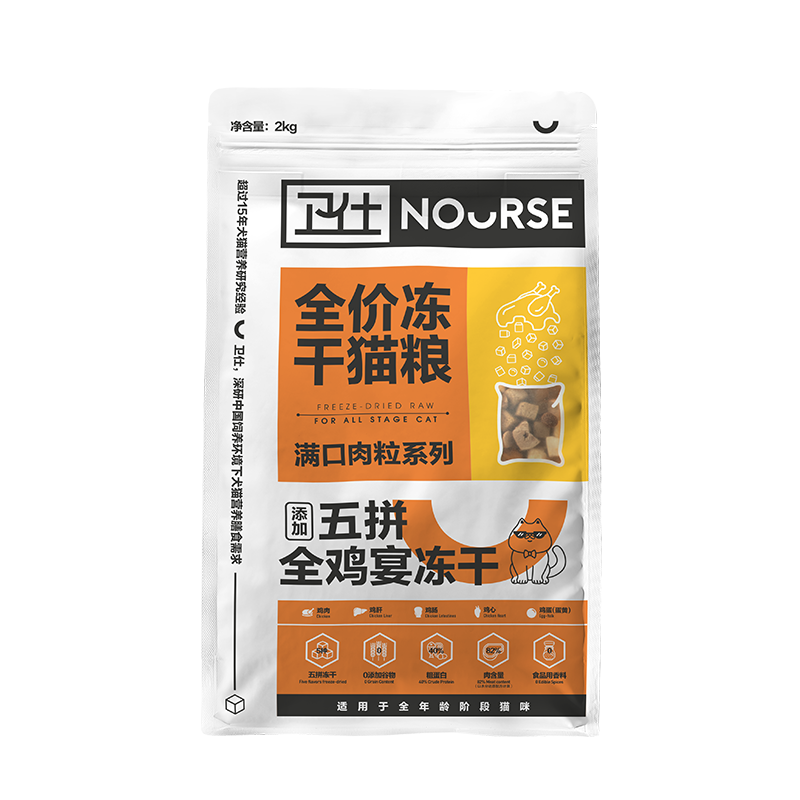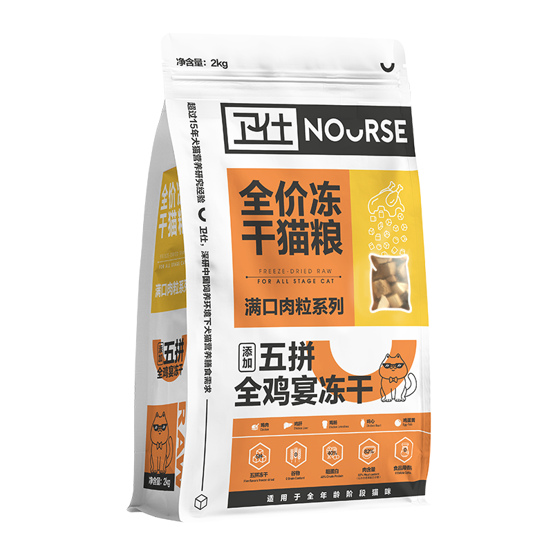 【胡歌代言】卫仕冻干五拼猫粮 成猫幼猫主食卫士全价冻干猫粮 五拼冻干全鸡宴猫粮2kg