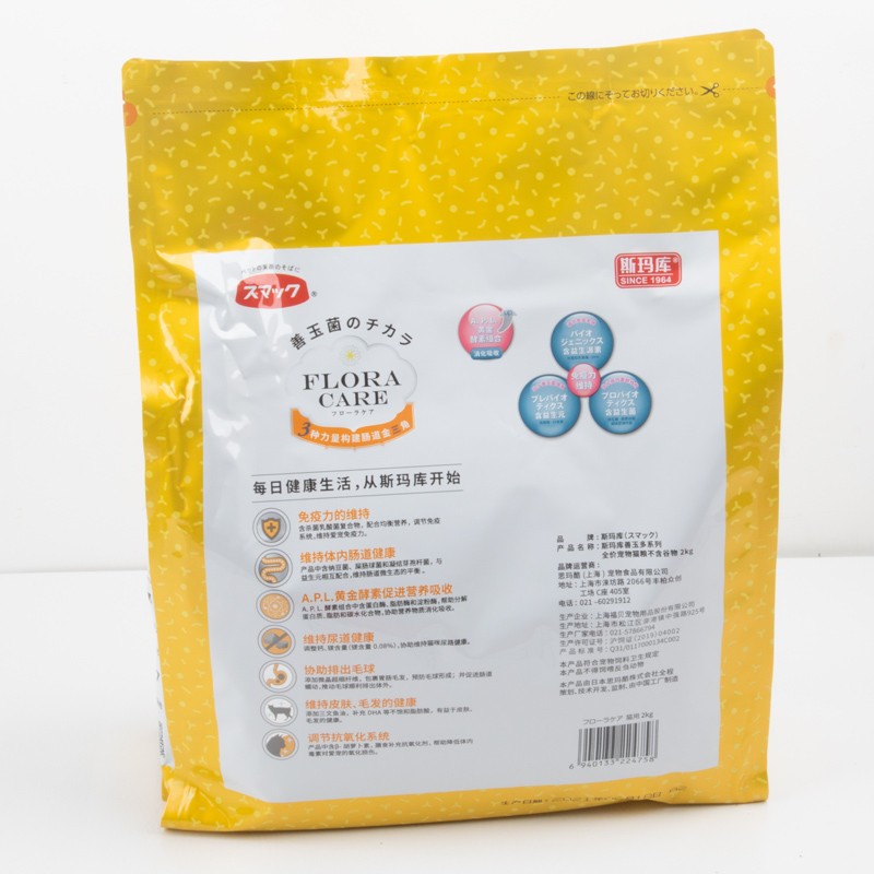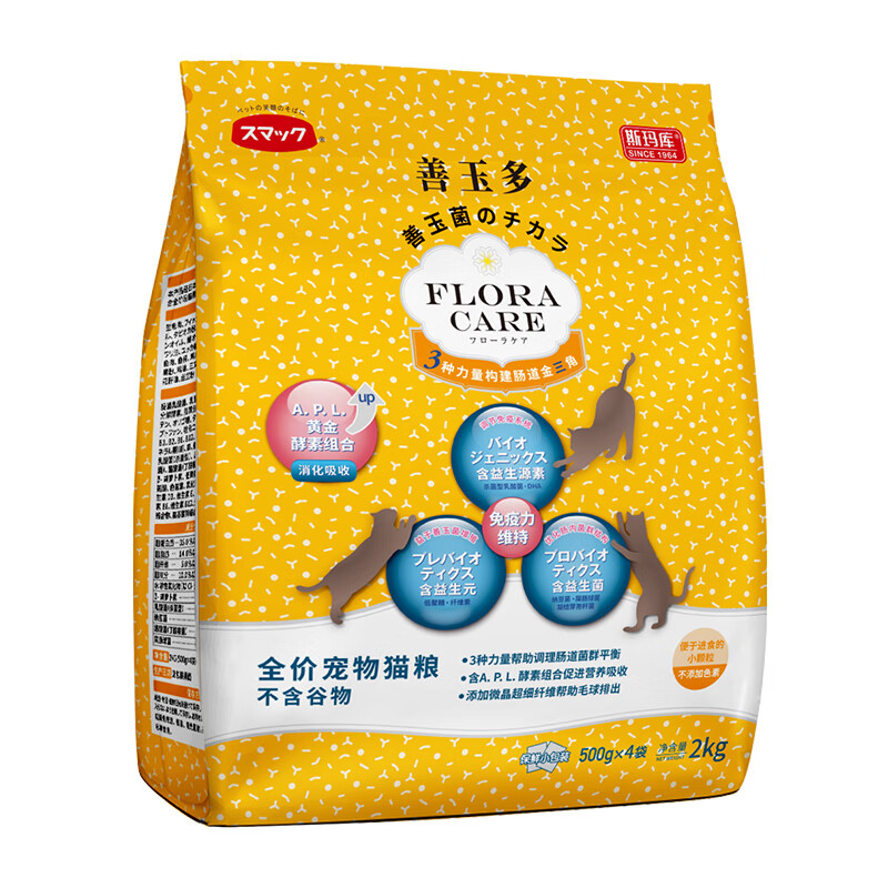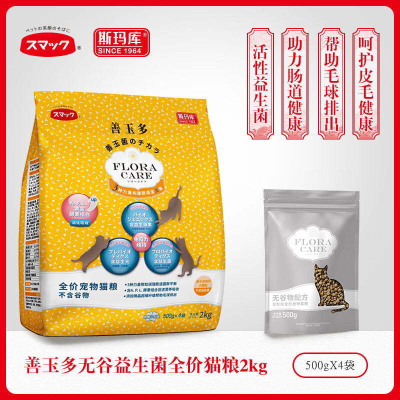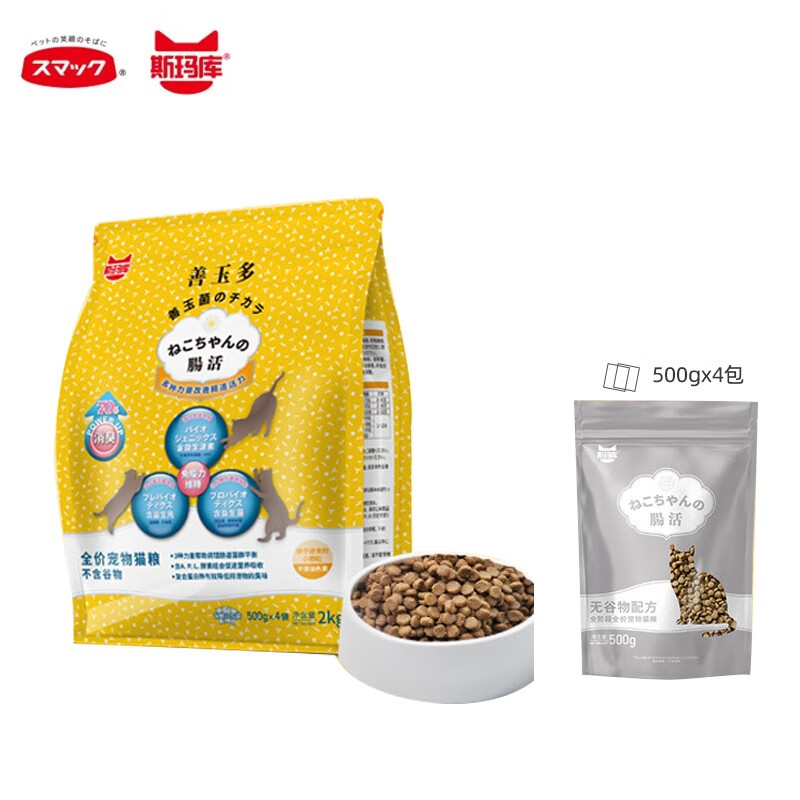 斯玛库日本斯玛库系列益生菌无谷全价猫粮 添加益生菌酵素猫粮通用型 肠活猫粮2kg(500g*4)通用款 全阶段