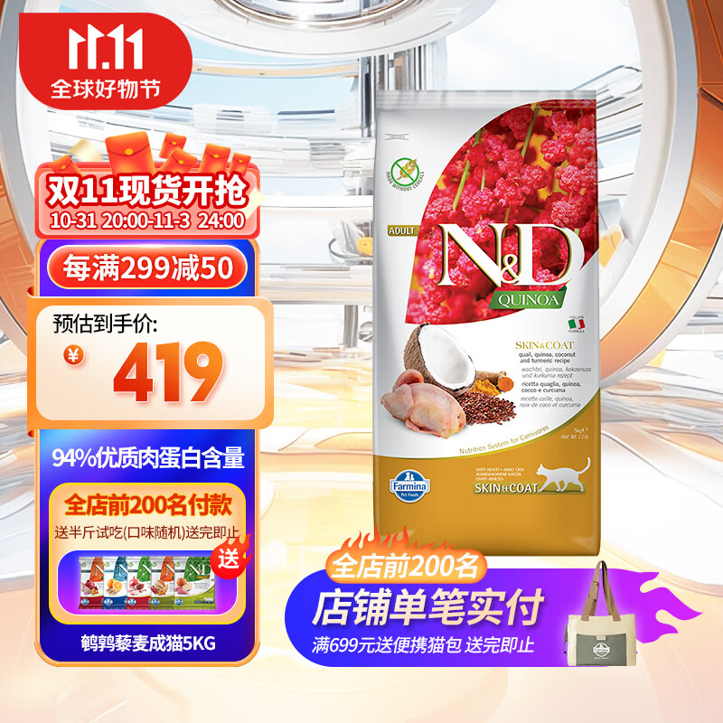 法米娜Farmina新配方鹌鹑藜麦椰子无谷成猫意大利进口成猫粮 5kg