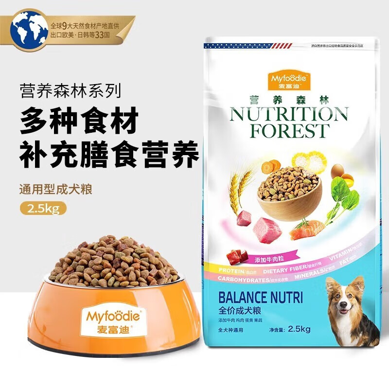 麦富迪(Myfoodie)【厂家直发】狗粮粮营养森林中大小型犬泰迪金毛通用犬粮 营养森林成犬粮2.5kg