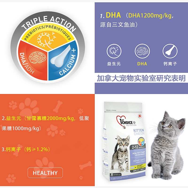 加拿大原装进口 益之选1'st choice幼猫粮 健康成长配方幼年期猫粮5.44Kg 鲜鱼鲜肉天然粮奶糕主食喵咪主粮