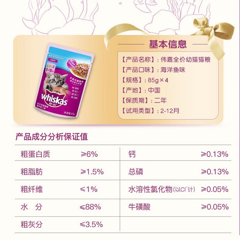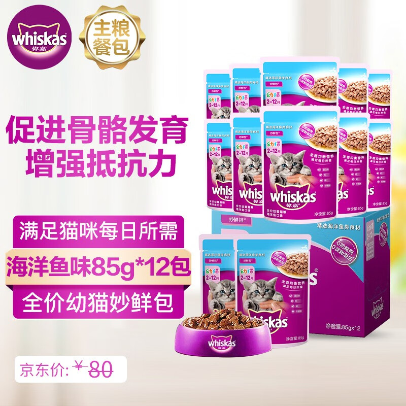 伟嘉(whiskas) 猫零食幼猫妙鲜包软包猫罐头 海洋鱼味85g*12整盒装