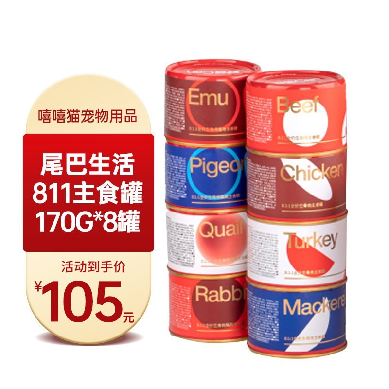 FURRYTAIL尾巴生活811主食罐猫咪全价生骨肉主食罐湿粮包猫粮猫罐头猫罐头 170g*8罐(混合装)【八仙过海】