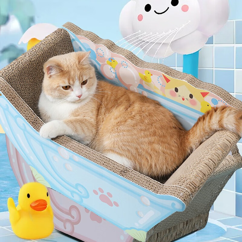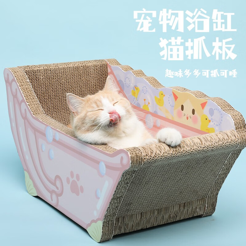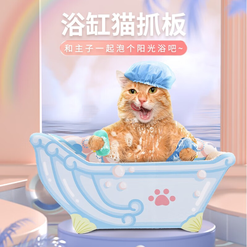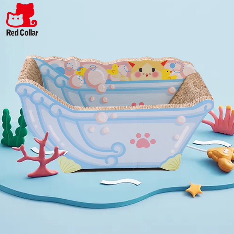 红项圈 Red Collar 贝壳浴缸猫抓板-蓝色大号瓦楞纸不掉屑磨爪器猫玩具猫抓板猫窝一体