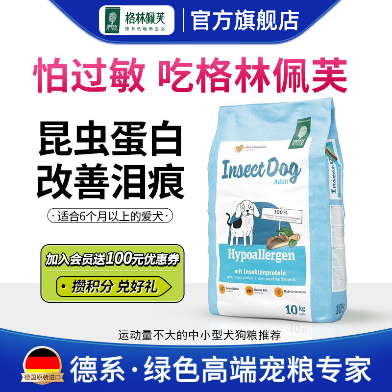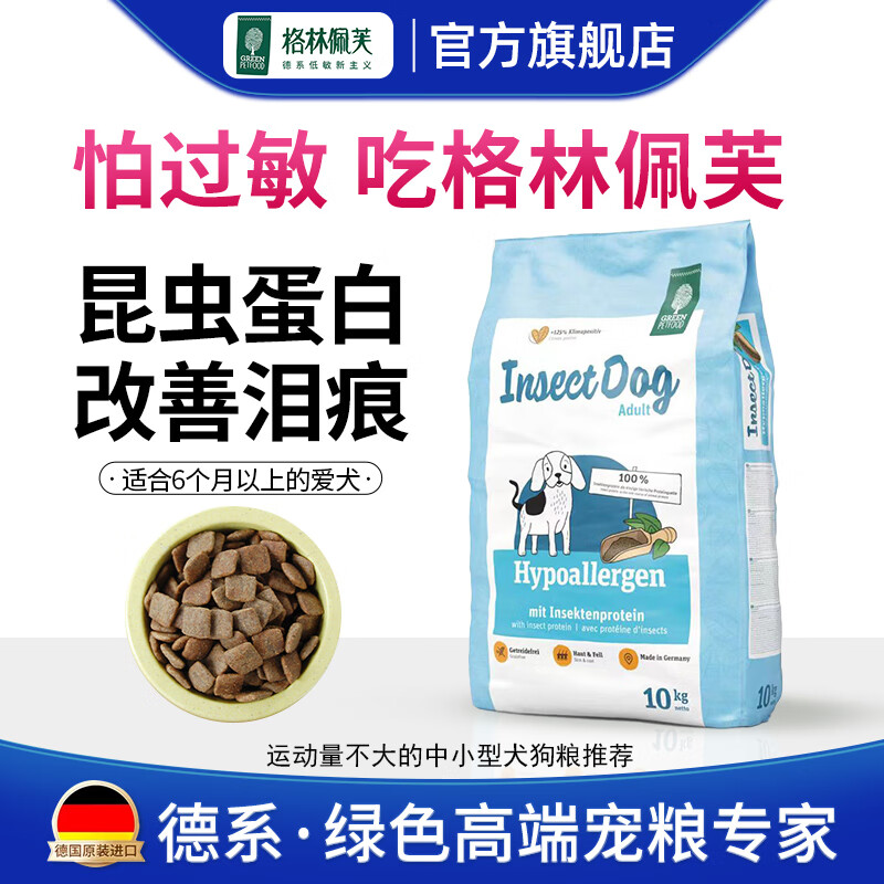 格林佩芙德国进口低敏狗粮昆虫蛋白无谷狗粮10公斤900克成犬粮过敏处方粮 昆虫蛋白低敏10kg 900g