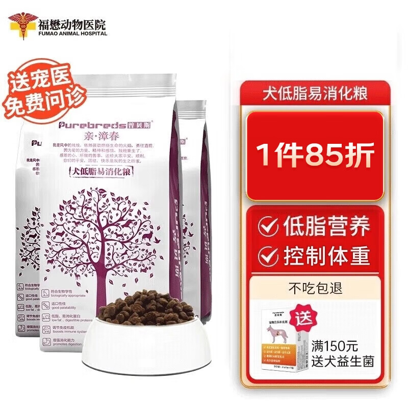 普贝斯肠道肠胃宝胰腺炎低脂低脂肪控制体重易消化狗粮低脂狗粮配方主粮 囤货必备套餐600g*三包