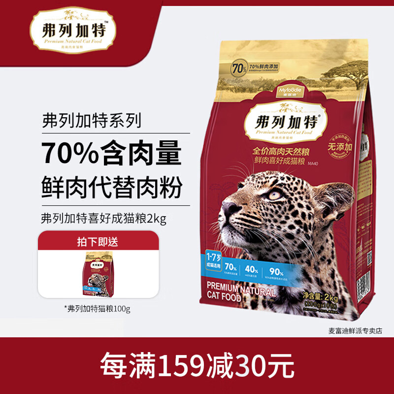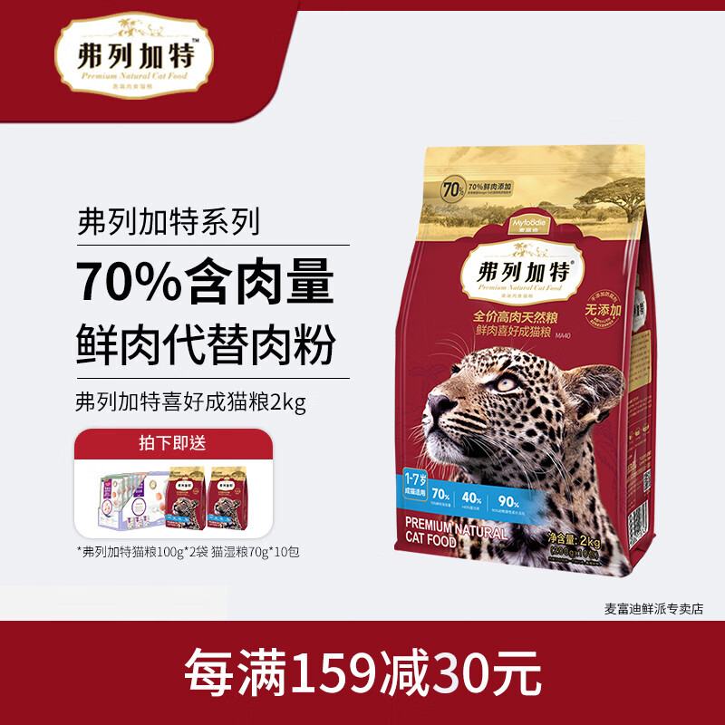 弗列加特高肉猫粮 成幼猫奶糕发腮营养全价粮(添加70%鲜鸡肉) 喜好成猫2kg
