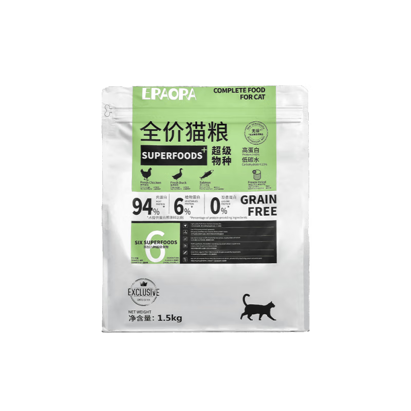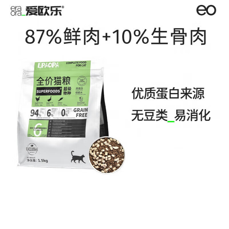 姬卉爱欧乐ERAORA物种Plus全价生骨肉营养增肥发腮高蛋白冻干猫 1袋装3斤 1.5kg
