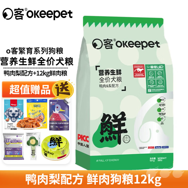 o客狗粮繁育专用全价犬粮鸭肉梨清热降火泪痕成犬幼犬通用鲜肉狗粮 营养生鲜(鸭肉 雪梨配方)12kg