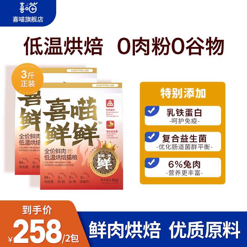 喜喵低温烘焙猫粮天然无谷成猫幼猫奶糕全价鲜肉猫主粮高蛋白烘焙粮 【高端三拼烘焙猫粮】1.5kg*2包
