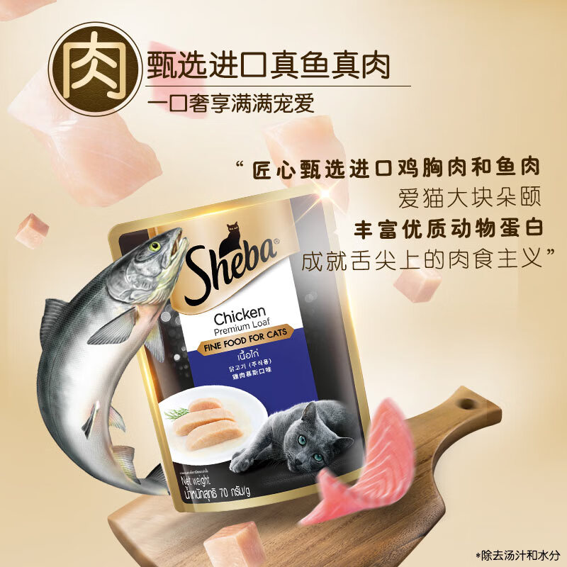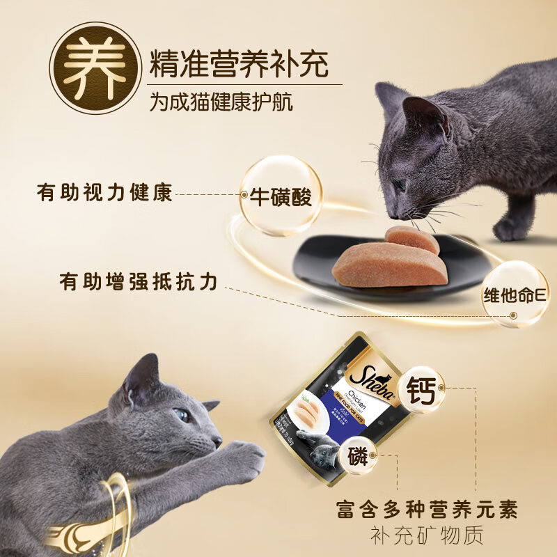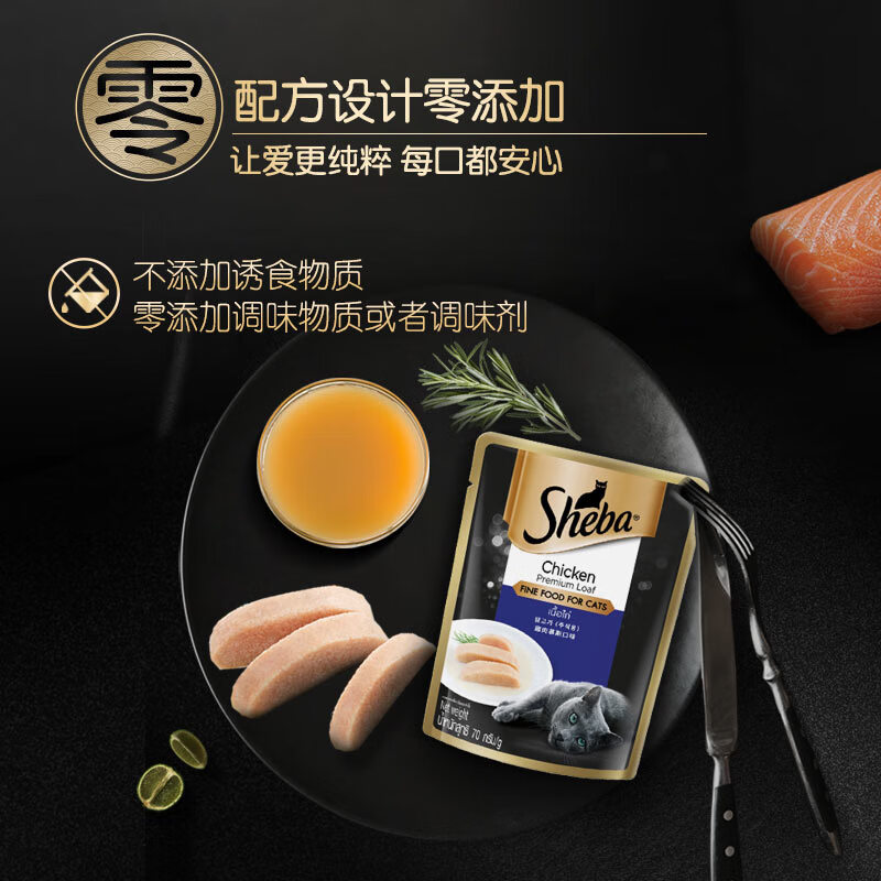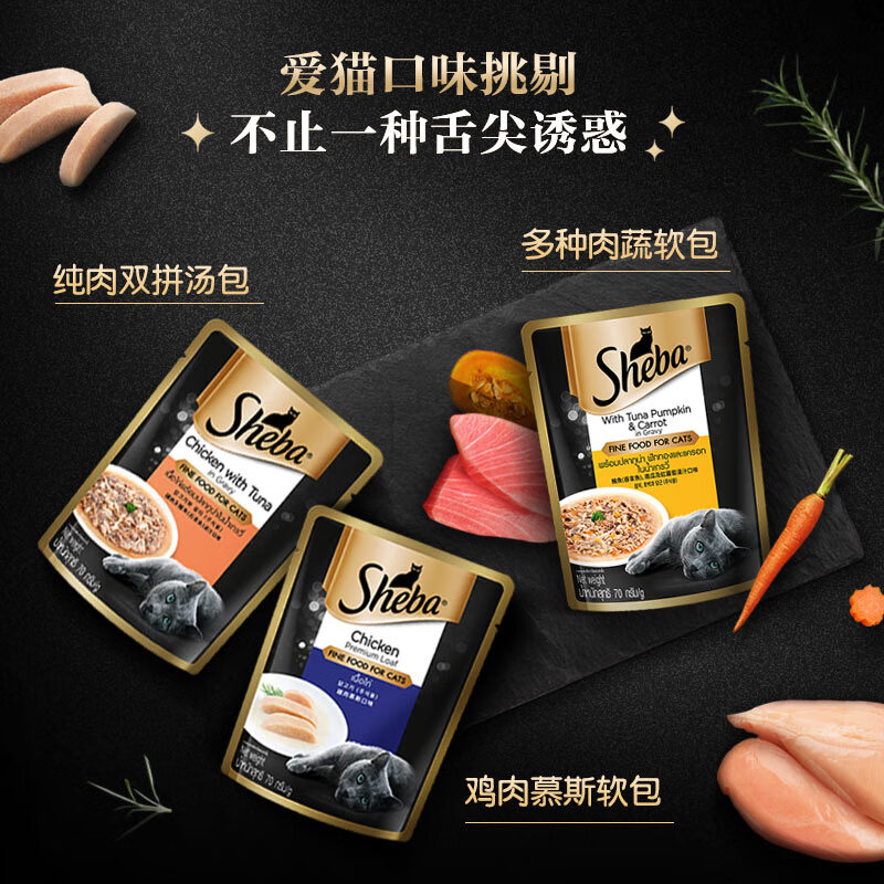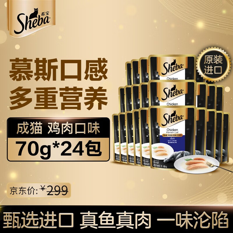希宝(Sheba)猫零食猫湿粮慕斯妙鲜包 成猫 鸡肉口味70g*24整盒装