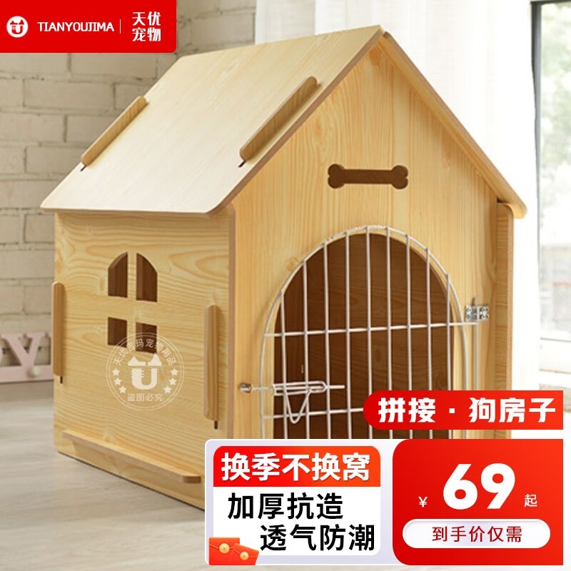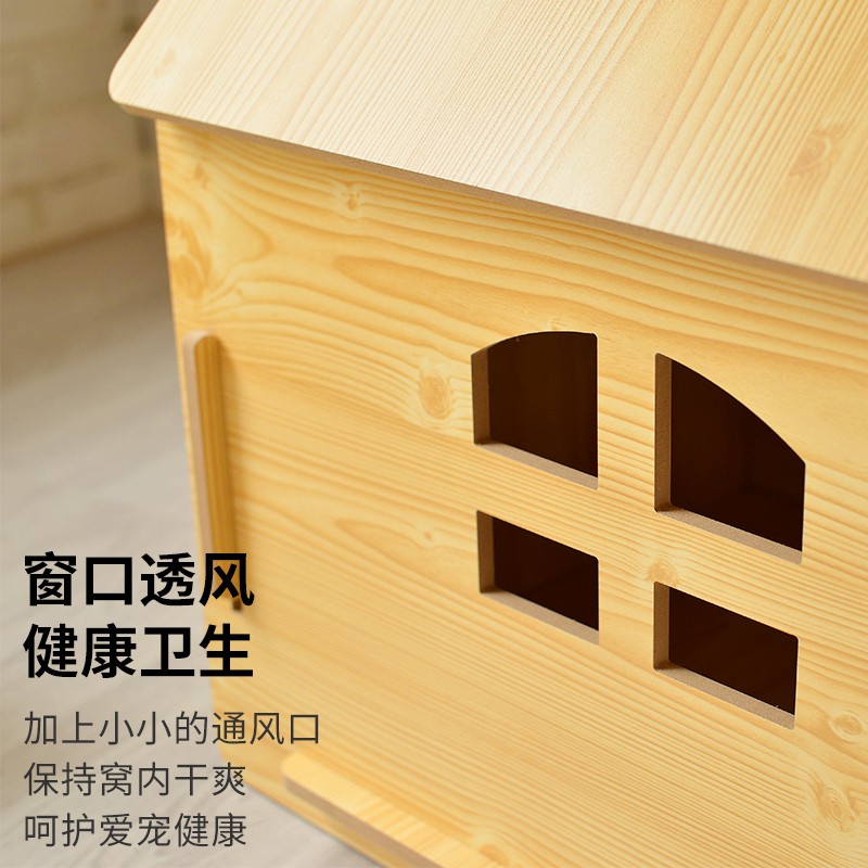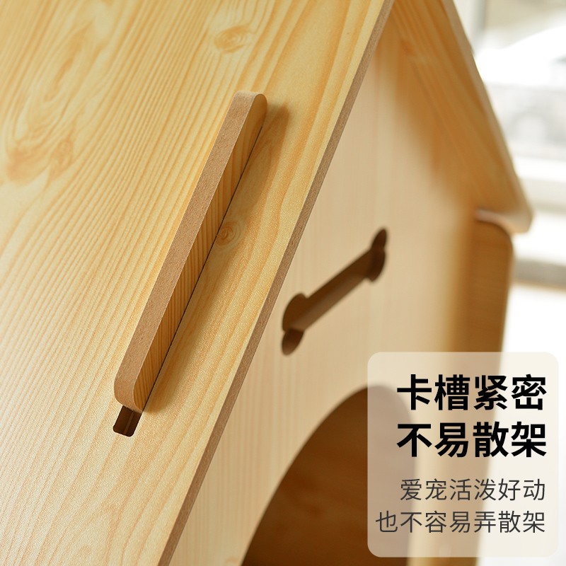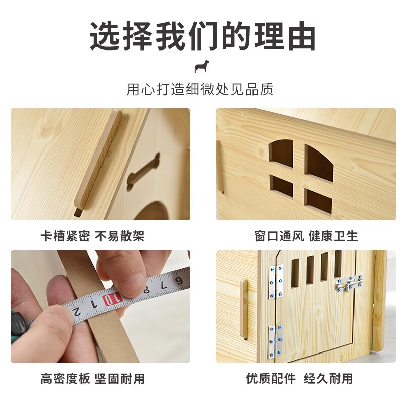 王太医木质狗屋室内户外狗窝猫窝小中大型犬泰迪宠物窝冬天保暖狗房子 原木色【铁门款】 垫子 L-58*44*59CM【适合18斤内】